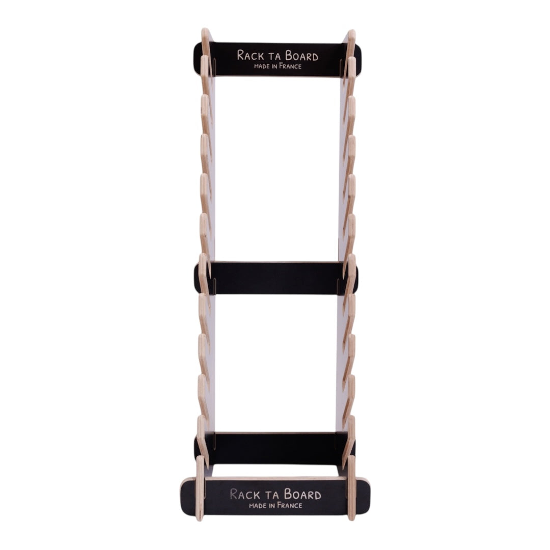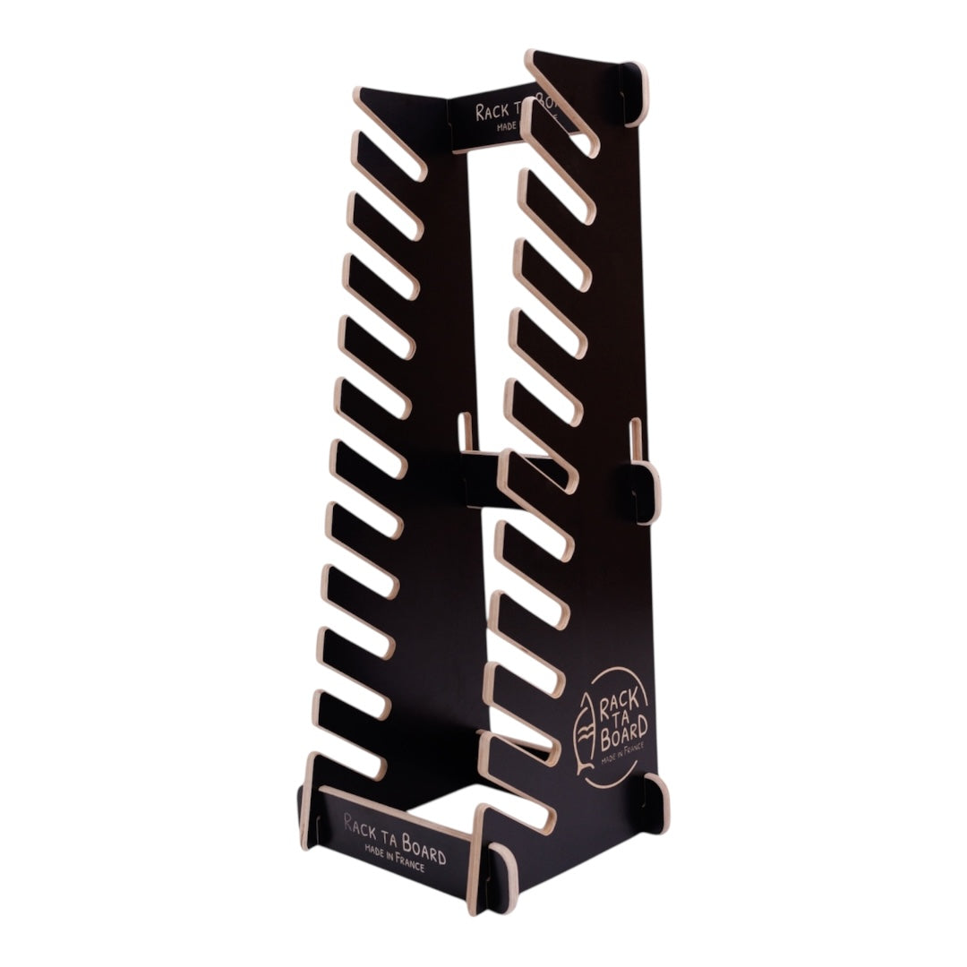 Le Rack Skate Rack Ta Board est un support autoportant conçu pour accueillir jusqu’à 11 plateaux de skate, toutes disciplines confondues (longboard, surfskate, carver, street…), ou jusqu’à 6 planches complètes en utilisant une encoche sur deux.