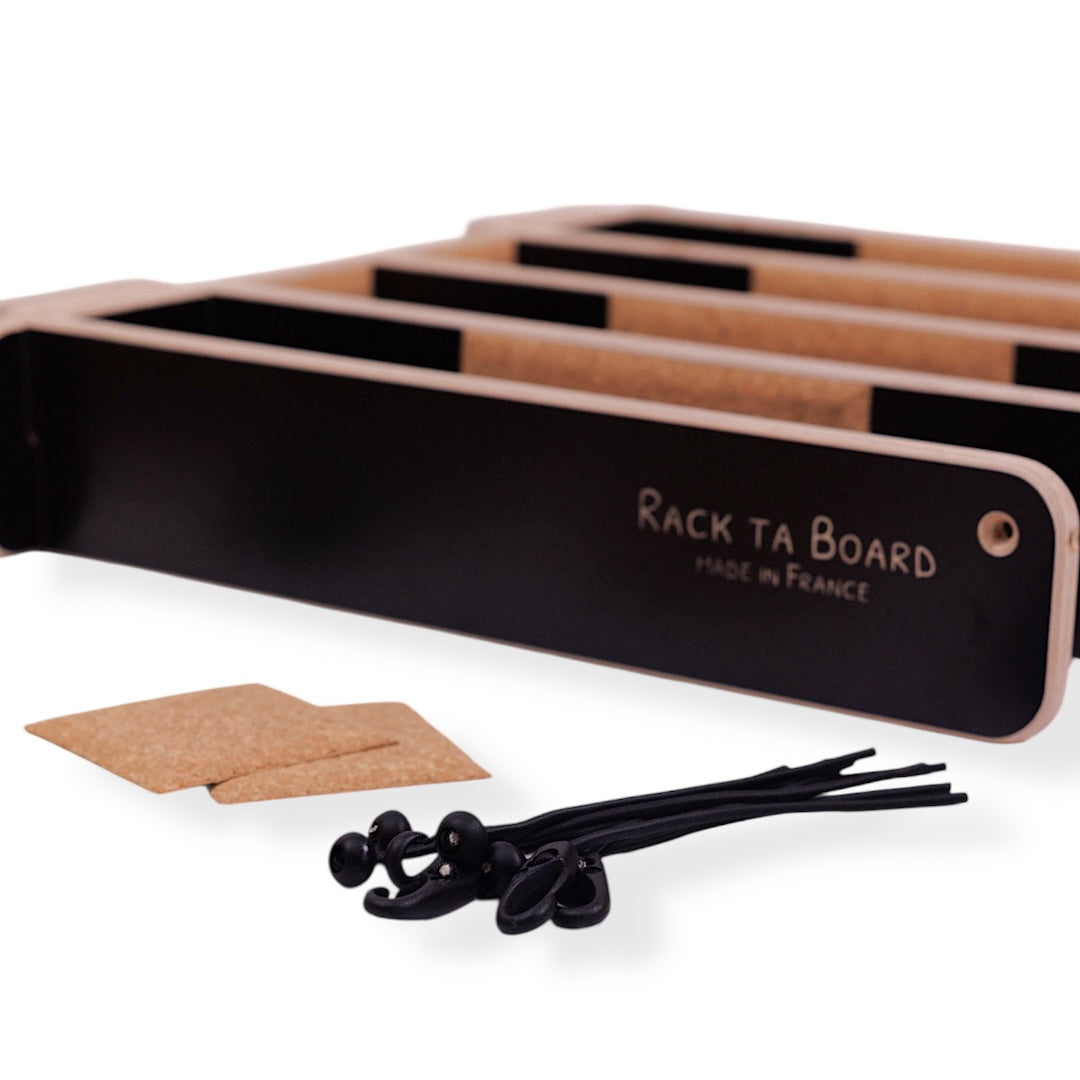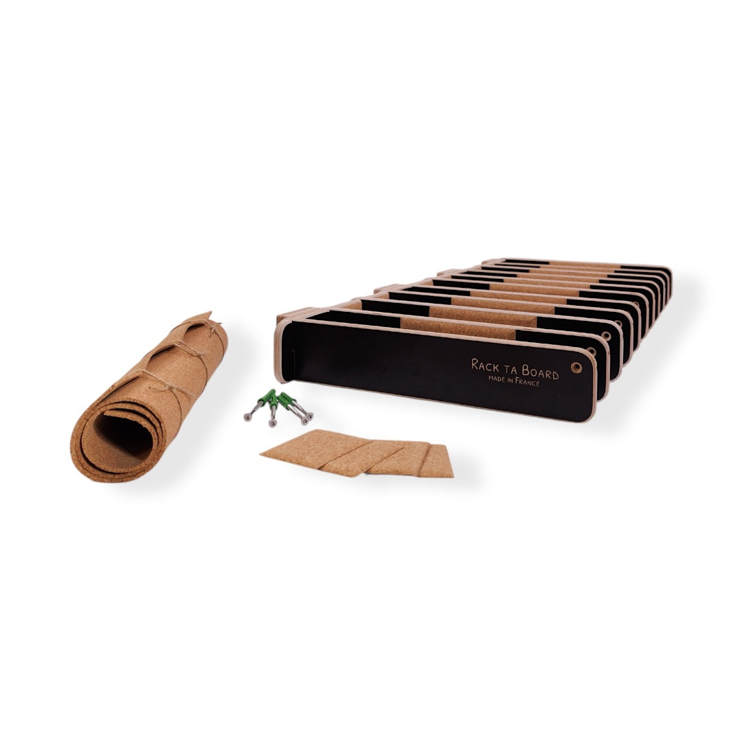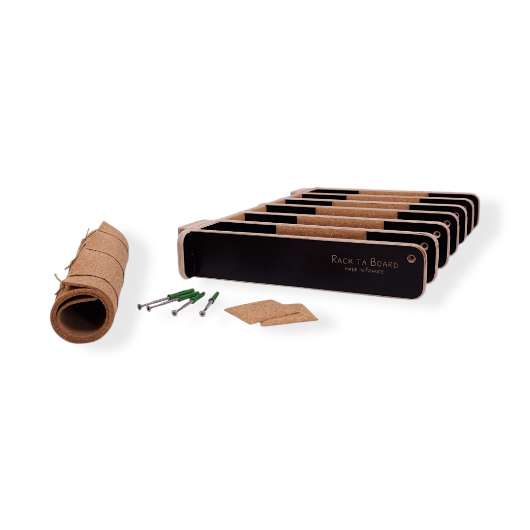 Les renforts en liège sont idéals pour protéger vos planches des chocs et leur éviter de glisser : le positionnement et l’inclinaison de vos planches sur le rack mural sont ainsi plus simples et plus sûrs.