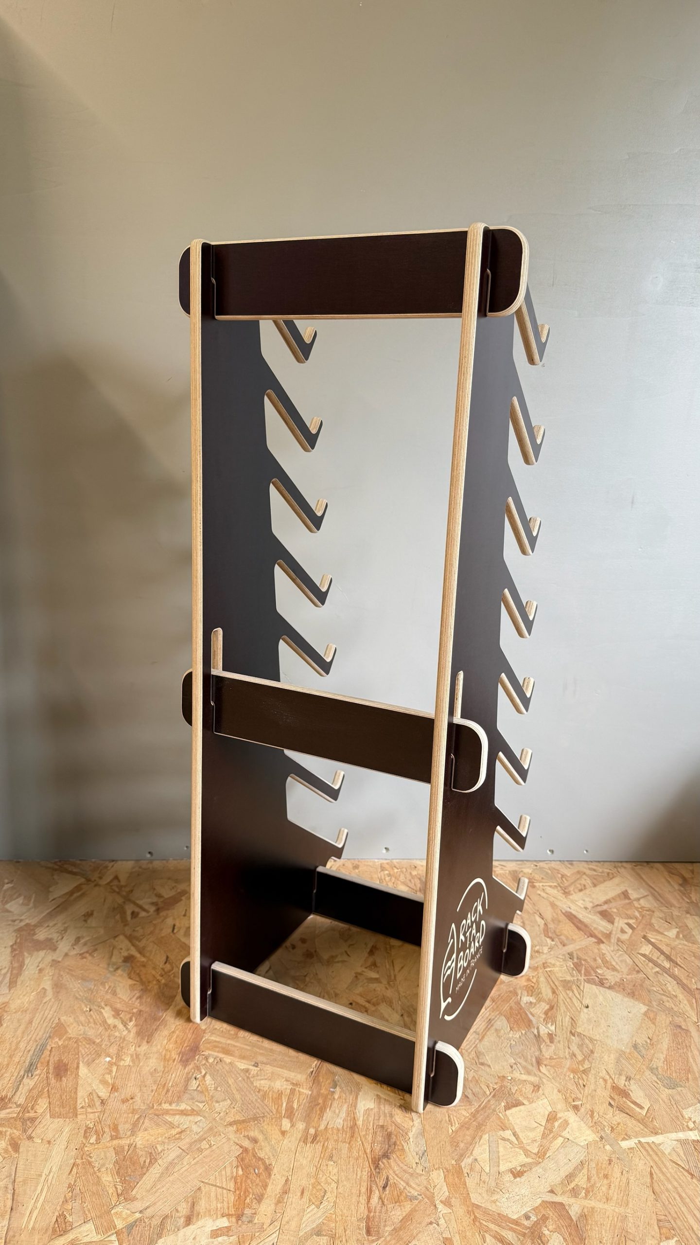 Le Petit Rack Foil Rack Ta Board (Ancien coloris & modèle d’exposition) est vendu en promotion, car il était utilisé lors d’événements, il comporte des défauts esthétiques mineurs, rayures et éclats légers (voir les différentes photos), il est de couleur marron, contrairement à nos rack actuels de couleur « noir »!